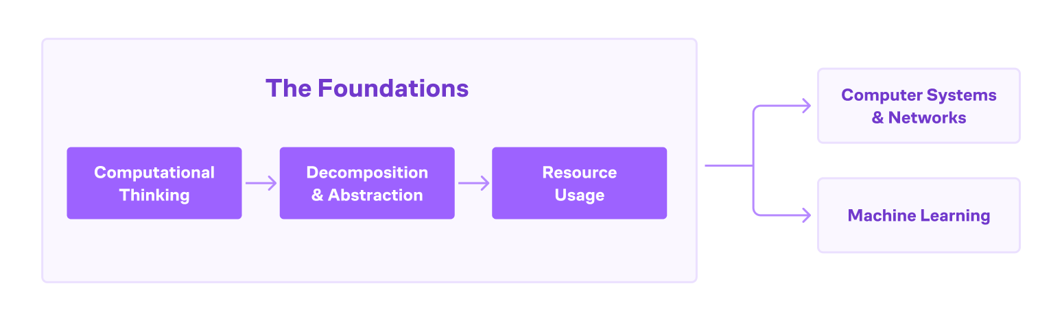 This course on Decomposition and Abstraction sits at the heart of our reimagined computer science foundations. It builds on our computational thinking courses, where students learn to express logic precisely and systematically. And it sets the stage for our resource efficiency course, where students discover how data structure and algorithm choices shape performance.