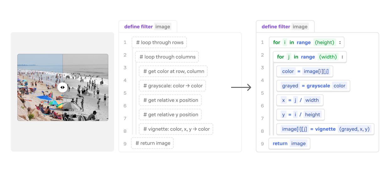 For Decomposition and Abstraction, we found our perfect sandbox in image processing. Building image filters naturally teaches students how to break down complex operations into simple, reusable pieces. Additionally, every operation provides immediate visual feedback—you can literally see if your abstraction works.